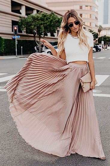 Women's High Waist Flowy Pleated Chiffon Maxi Skirt